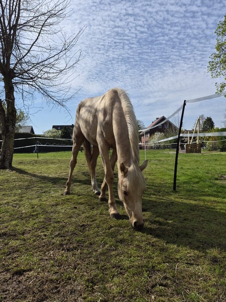 Zum Verkauf steht ein 2-jähriger, sehr lieber und kinderfreundliches Nachwuchspony mit bester Abstammung: Aus der Linie Cadlanvalley Sir lvanhoe x Charmeur, gezogen über Champion de Luxe, Golden Dancer und Golden Fleur. Der junge Wallach überzeugt nicht nur durch seine Abstammung, sondern auch durch seinen tollen Charakter. Für sein Alter ist er außergewohnlich brav, menschenbezogen und besonders kinderlieb. Er kennt bereits: . Bodenarbeit • Hinterherlaufen im Schritt, Trab und Galopp Dabei zeigt er sich stets lernwillig und unkompliziert. Natürlich hat er altersbedingt noch Flausen im Kopf und spielt gern- Weitere Pluspunkte: . Schmiede und Verladefrom • Geht bereits problemlos mit Kindern auf den Anhänger . Sehr unerschrocken • super Freispringen, wodurch er sich sowohl für den Springsport als auch für die Dressur bestens eignet. Ob für Kinder oder ambitionierte Erwachsene - dieses Pony bringt alles mit, um ein erfolgreiches Sportpony zu werden und später auch im Turniersport zu überzeugen. Aufgrund privater Umstände schweren Herzens abzugeben. Gerne kann er nach Absprache besichtigt werden - überzeugen Sie sich selbst von diesem tollen Nachwuchstalent!