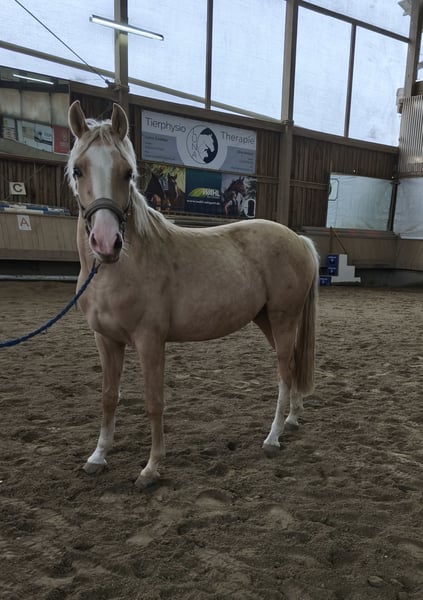 Verkaufe meinen 2 jährigen Palomino Pony Wallach von Golden Daim. Er ist sehr Menschen bezogen. Gustav steht korrekt da und freut sich ein Reitpony zu werden.