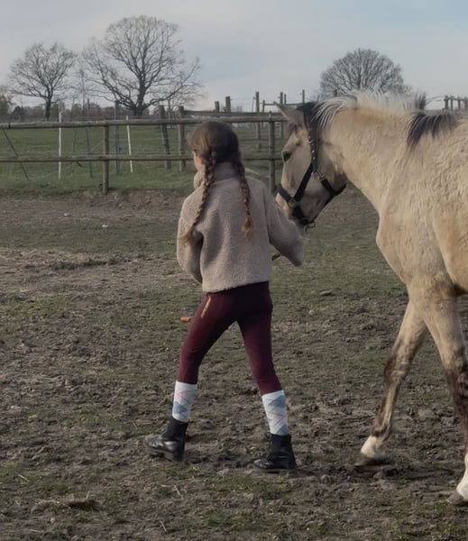 For this exceptional, foaled in 2024, gelding with great future potential, a new home is sought. This young, already gelded horse impresses now with outstanding quality in all three basic gaits and possesses everything one would wish for in a future championship horse. Especially in terms of FEI competition, he shows promising talent and a natural presence that clearly sets him apart from others. But he is not only remarkable athletically: his gentle, open, and human-oriented nature already makes him a true heart horse. He is absolutely well-behaved in handling, so children can easily lead, groom, and walk him. This rare combination of quality and character makes him a truly exceptional pony. He comes from our own breeding, and his dam can be visited locally. Currently, he measures approximately 1.45 meters at the withers and is a descendant of Goldgarant. The sale is solely due to herd reduction and was not an easy decision. Therefore, we are looking for a loving home or supportive hands that recognize his potential and can help develop it further. ✨ A rare opportunity to acquire such a versatile and characterful young horse.