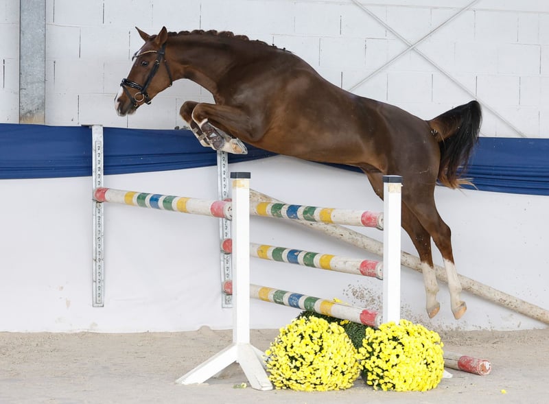 In unserer Kollektion stehen streng selektierte Youngster f�r alle Anspr�che: Ausbildungs-, Zucht- und Kinderponys Hier gelangen Sie zur Gesamtkollektion: https://ponyforum.auction Ein weiterer vielversprechender Sportler präsentiert sich mit dem groß aufgemachten Jungenhengst Lehnsmanns Marinus! Der Dunkelfuchs stammt aus bestem Hause und hat die Sporttauglichkeit in die Wiege gelegt bekommen. Sein Vater Mentano K begann seine Parcourskarriere als Vize-Bundeschampion und sammelte im Anschluss internationale Erfolge in der Vielseitigkeit. Marinus´ Mutter StPrSt Piroschka kann sowohl im Bereich Zucht wie auch im Bereich Sport beeindruckende Erfolge ihrer Nachkommen vorweisen! Sie stellte u.a. schon einen Körungssieger, mehrere prämierte Töchter und sechs Kinder, die Erfolge in Springen UND Dressur bis einschließlich der Klasse M erzielt haben. Und nun steht mit Lehnsmanns Marinus der nächste Champion in den Startlöchern! Direkt vom Züchter.