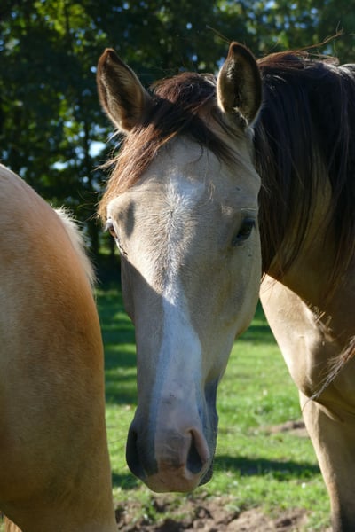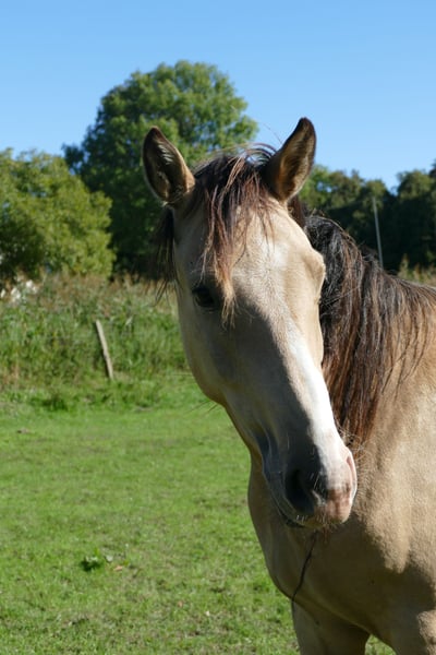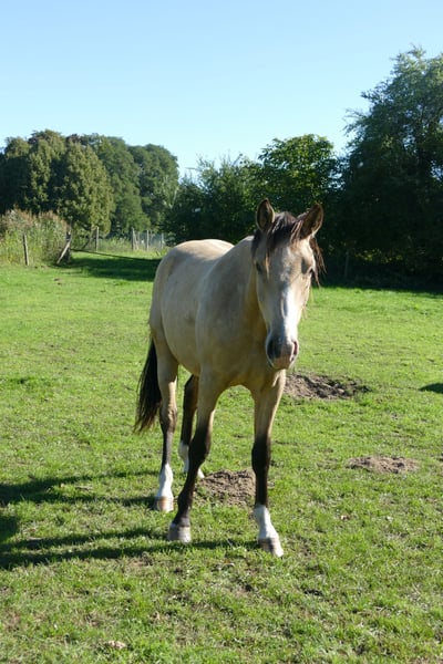 Copperfield is a handsome gelding who is sure to grow out of pony size. As I want to reduce my pony stock, I unfortunately have to part with him. At just 2 years old, he has already reached 150 cm. Copperfield's sire is the legendary riding pony stallion DSP Cosmo Royal, who won the Bundeschampionat three times in a row in 2017, 2018, and 2019, and was the vice champion among dressage ponies in 2020; series winner DPF L / successful up to DRE L**. Dam: Chambertina - ZStPr.. 8.35 Maternal Grandsire: FS Chambertin - successful in DRE A / HLP 30 TT-8.51 / 41 registered sons / 10 StPrSt / 75 sport successful NK up to SPR M + DRE S, among others Tackmann's Cantuccini - successful up to DRE S*. Copperfield is currently growing up in a mixed young horse herd and is very compatible with everyone. He is familiar with the farrier, has been regularly dewormed, and is accustomed to daily handling by humans.