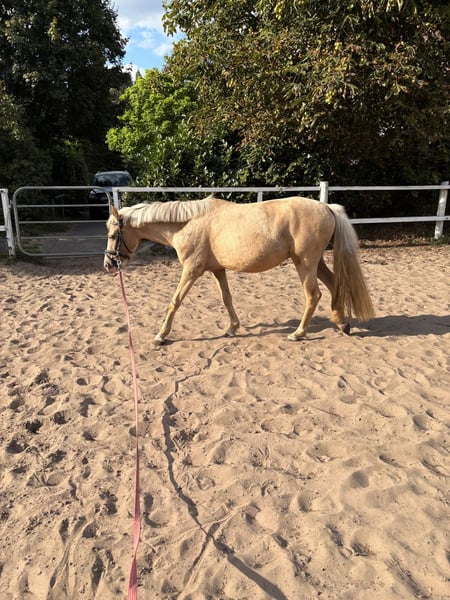 Il nostro castrone pony di 2 anni è in buone mani. È nato da Primera vez, un pony da monta tedesco e una cavalla pony irlandese. È completamente vaccinato e appena sverminato. Un grande futuro saltatore e pony per bambini.