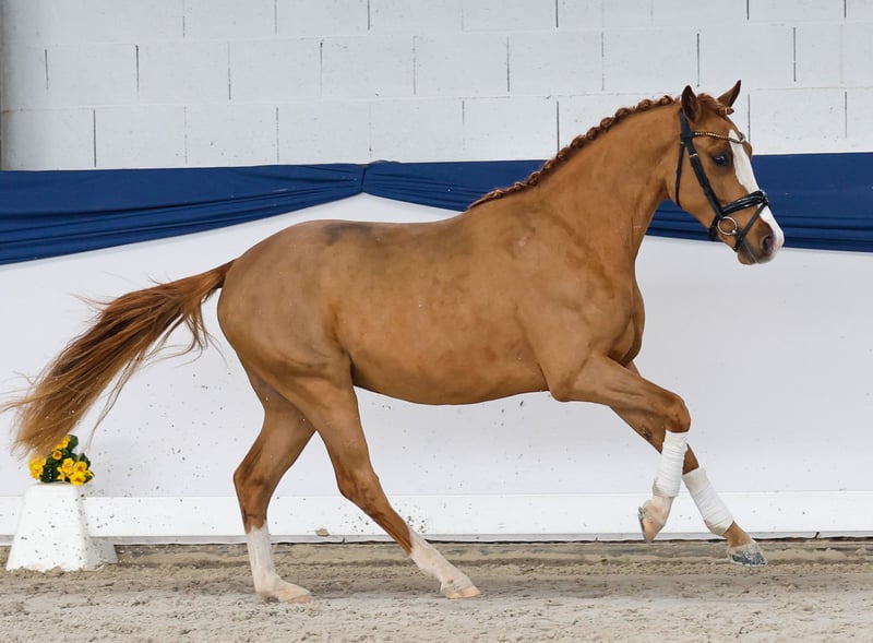 In unserer Kollektion stehen streng selektierte Youngster f�r alle Anspr�che: Ausbildungs-, Zucht- und Kinderponys Hier gelangen Sie zur Gesamtkollektion: https://ponyforum.auction Der dreijährige Fuchswallach Wasteins Dorricone hat ein absolut hochkarätiges Pedigree. Sein Vater Darlington selbst ist erfolgreich im Dressursport bis zum Grand Prix! Ein Bruder unseres Auktionspony ist ebenfalls in der S-Tour erfolgreich, dies ist kein geringerer als der Hengst Darubi Gold. Aus dem weitverzweigten Mutterstamm entspringen u.a. der Stempelhengst Golden Dancer und der Europameister Danilo. Dorricone steht im sicheren Ponymass und er wird mit seiner Grundqualität sicherlich in die erfolgreichen Hufspuren seiner international wirkenden Verwandtschaft treten können! Er kommt direkt aus der Aufzuchtgruppe zu uns und ist noch roh, aber er stellt sich mit allen Anforderungen clever an und bemüht sich immer, seine Menschen zu verstehen. Ein feiner Kerl, der mit seinem ausgeglichenen Wesen auch sicherlich eine Familie glücklich machen kann.