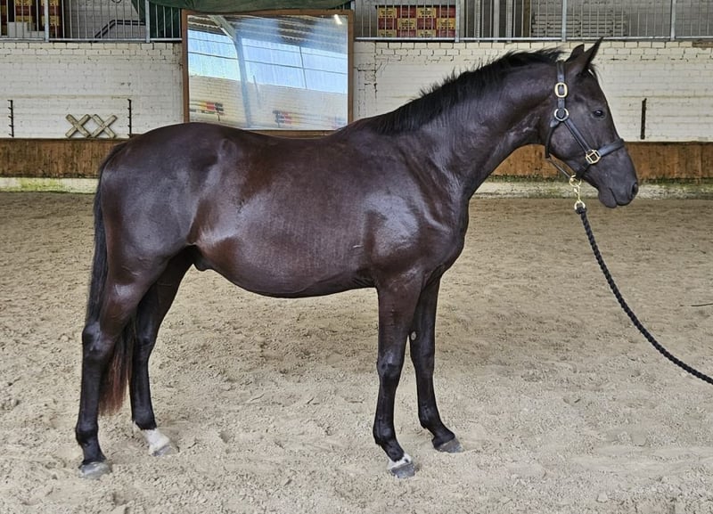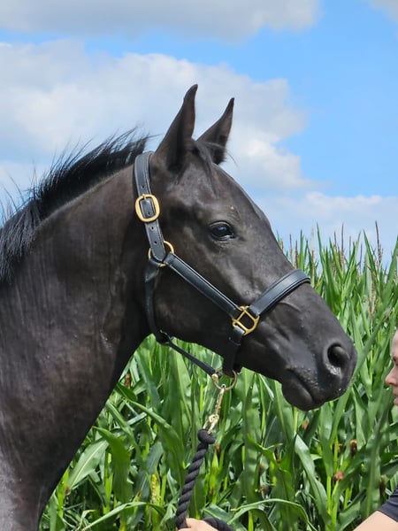 Nevermore (Mori) *2023 Dark Bay (Rappe) Gelding sired by Neverland WE out of Fabriano x Wolkenstein II Current height: 15.2 hh As a foal, he was awarded a 1A rating and placed second at the Steyerberg Foal Championship. Health certificate available. He is turned out outdoors year-round in a mixed-age and mixed-gender group and is low in the pecking order. Regularly vaccinated against influenza, tetanus, and West Nile Virus. Regularly dewormed. He leads well with a halter. He will need some time before he can be ridden, which gives his new owner the opportunity to build trust through stress-free groundwork training. He learns, thinks, and moves very quickly, making him less suitable for children. If not visible in the photos, he has a relatively short back and will require a 16-inch saddle and a gentle rider. He is a sweet little horse but can be quite opinionated! He loves having a confident handler who provides clear instructions and helps him build self-confidence, as he is not a robot that can be programmed to perform perfectly immediately. Patience and time are essential for all young horses, and they are well rewarded. He is very happy to stay here until the end of October.
