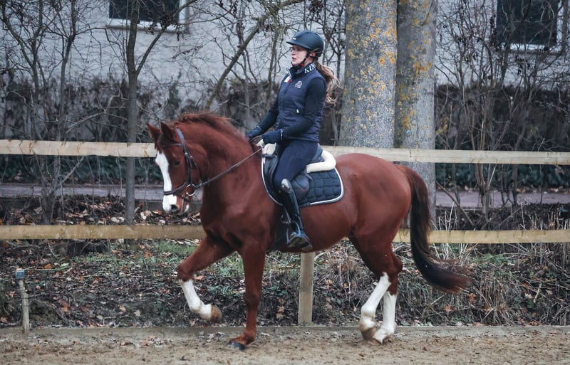 Terbofens Quick III stammt aus einer sporterfolgreichen Anpaarung. Er befindet sich seit August in der Ausbildung und lässt sich in allen Gangarten fein und locker reiten. Er lernt sehr schnell und auch das anreiten war total unkompliziert. Quick III ist das perfekte Pony für den großen Dressursport. Auch als Familienpferd könnten wir ihn uns vorstellen, da er sowohl kleine und auch große Reiter gut abdeckt. Wunderschön gezeichnet mit 3 hoch weißen Beinen, sportlich aufgemacht mit herausragenden Gangarten und einem neugierigen aber ausgeglichenen Gemüt, er möchte immer gefallen. Seine hohe Leistungsbereitschaft gepaart mit seinem ruhigen und liebevollem Gemüt machen ihn zu einem Pony, welches uns jeden Tag bei der Arbeit sowie im Umgang sehr viel Freude bereitet. Er ist sehr verschmust. Er hat jetzt eine umfassende Grundausbildung erhalten und kann bei kontinuierlicher Winterarbeit und Konditionsaufbau in Dressurprüfungen eingesetzt werden. Er hat eine hervorragende Arbeitseinstellung und versucht seinen Reiter immer zu verstehen. Seine Geschwister sind hoch erfolgreich im Sport: Terbofens Quick I (im Sport unter dem Namen Grenzhoehes Quattro unterwegs) ist in Dressurprüfung Kl. S* /Prix St. Georg plaziert . Bild Nr. 11 Terbofens Quick II war 4-jährig beim BuCha plaziert, hat 5-jährig die Quaili zum BuCha gewonnen und ist erfolgreich in Dressurpferdeprüfung L** und in FEI-Prüfungen siegreich/plaziert. Bild Nr. 12 u. 13 Terbofens Queen Two bekam ein Stutfohlen und wurde 02.2021 nach Irland verkauft und ist dort siegreich in FEI -Prüfungen. Bild Nr. 14 u. 15 Aufgrund des Ausbildungsstands ist Quick aktuell (noch) nicht für Anfänger geeignet. Er wird direkt vom Züchter nur in sportlich fördernde Hände verkauft. Nicht an Händler oder Schulbetrieb..