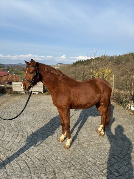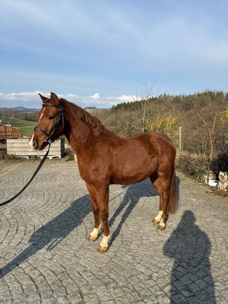 Zum Verkauf steht ein 4 jähriger sportlicher Pony Wallach. Tolle GGA und vor allem einen guten Trab. Sehr brav beim Putzen, Führen und Handpferd ausreiten. Kennt außerdem Longieren, auch mit Stangen, und das Reitergewicht. Steht jedoch noch am Anfang seiner Ausbildung (Rohdiamant). Wird in fördernde Hände abgegeben.