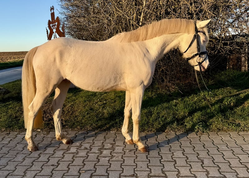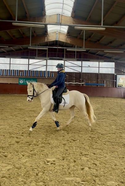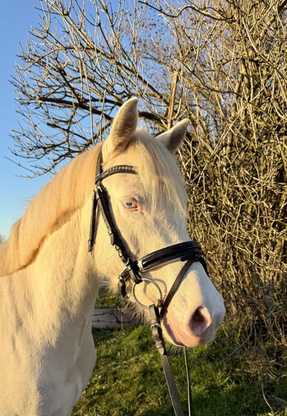 Zum Verkauf steht ein wunderschöner 4-jähriger Deutscher Reitponywallach in der seltenen Sonderfarbe Cremello. Er ist gut angeritten und zeigt sich unter dem Sattel brav, motiviert und lernwillig. Seine ersten Sprünge hat er bereits sehr gut gemeistert. Im Umgang ist er unkompliziert, freundlich und zeigt sich stets aufmerksam und kooperativ. Ein toller Allrounder mit viel Potenzial, der sich ideal zur weiteren Ausbildung nach eigenen Vorstellungen eignet. Aktuelle Röntgenbilder aus 01-26 sind vorhanden.