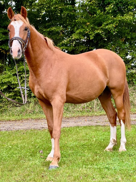 -Privatverkauf- Alter: 4 Größe: aktuell 1,43m Vater: Neverland Muttervater: Champion de Luxe Geeignet für: sehr talentiert für Dressur, Springen, Vielseitigkeit Angeritten Video: https://youtu.be/0u0LlqYv4O0?si=J37RPJEToVryEGts Aufgrund von Zuchtaufgabe steht ein in 05.2021 geborener sehr talentierter Reitponywallach aus eigener Zucht von Neverland aus einer Champion de Luxe Staatsprämienstute zum Verkauf. Sein Halbbruder ebenfalls aus eigener Zucht wurde gekört. Der Wallach ist seit ca 4 Wochen schonend angeritten und war in dieser Phase vorbildlich brav. Er lässt sich gut in jeder Gangart Zirkel und ganze Bahn reiten. Er besticht durch drei sehr gute Grundgangarten und einer außerordentlich guten Arbeitsbereitschaft. Zusammen mit altersentsprechender Neugier, Aufgeschlossenheit und ponybedingte Frechheit machen ihn zu einem besonders tollen Sportpartner mit viel Go. Dadurch ist er sehr gut als Kinderpony geeignet, doch nicht für Reitanfänger zu empfehlen. Aktuell misst er 1.43m. Er ist in einer altersgemischten Wallachherde mit einem weiteren Gleichaltrigen zusammen in Offenstallhaltung aufgewachsen. Er ist regelmäßig geimpft. Die Zähne wurden gerade erst im Juli ‘25 gemacht. Ebenso ist er frisch entwurmt. Regelmäßige Vorstellung beim Schmied ist selbstverständlich. Wir bitten von Händleranfragen abzusehen.
