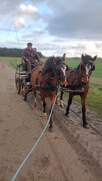 This charming and friendly gelding, who is very attentive to humans, is searching for his forever family. He was gently and playfully backed by us and has been very sweet and calm from day one. He has never taken a wrong step and approaches all new experiences with full enthusiasm. He is very brave and, for his age, confident and relaxed. He is traffic-safe; trucks and large tractors do not disturb him, and he can be ridden independently in all gaits by a 9-year-old girl. An all-around wonderful pony. He has never been ill. A health check (AKU) is not available but can be arranged if desired. Additionally, he has been driven in a pair and has won a free jumping championship. He handles competitions and training with flying colors and is not spooky. He is well-suited for breeding; the rider in the photos is 173 cm tall. He is barefoot and grows in a mixed herd in an open stall, living on grass 24/7 with constant hay, which he tolerates very well. For serious inquiries, please call 015118980354. He is only being sold because I am simply too tall for him to compete in tournaments long-term, and I already have his full-sized brother. He will only be placed in caring and loving hands. Equipment such as saddle and bridle can possibly be purchased together. Based on past experience, we do not send videos, as many only collect footage without checking the distance or realizing they are looking for a large horse and do not read the full ad. Genuine interest is best served by viewing this wonderful pony in person. The pony is still at the beginning of his training but definitely has the potential to become a ribbon collector. His calm demeanor will surely make him shine at any competition. However, if you are looking for a highly trained, show-quality dressage pony at age 3, this is not the right place. His training focuses on healthy riding, emphasizing suppleness, fine contact, and safe, relaxed movement from A to B—more important for children and adults than fancy leg movements. To avoid riding tourism, a fee of 35 euros is charged for show, lunging, and trial riding.