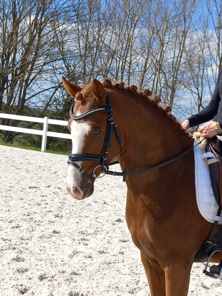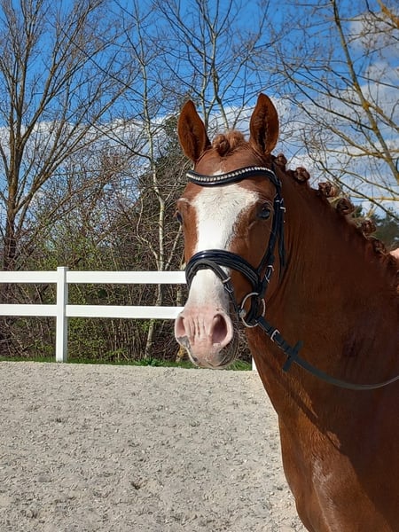 Negan is a stunning young German Riding Pony gelding with lots of talent. He combines everything one could wish for in a good pony: expression, quality, and character. Under saddle, Negan consistently demonstrates willingness, calmness, and readiness to perform. He is very easy to handle and, despite his young age, remarkably well-behaved. With proper training, this typey gelding is a promising future competition pony and a wonderful partner for leisure riding! His pedigree is highly interesting and promising. His sire, FS Next Diamond, is a top producer in German Riding Pony breeding, combining FS Numero Uno, FS Don't Worry, and FS Champion de Luxe in direct lineage—truly performance breeding at its best! On the dam’s side, Las Vegas v. Lord Loxley and Brillant are also outstanding performance sires. Negan’s maternal half-siblings have already achieved success in dressage, show jumping, and eventing at the competition level. We look forward to his further development. He is ready for introductory tests right now.