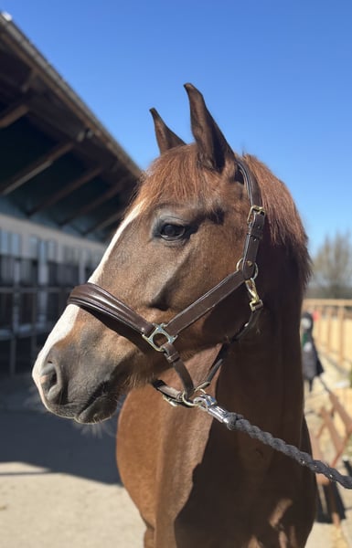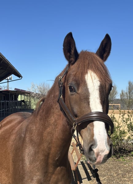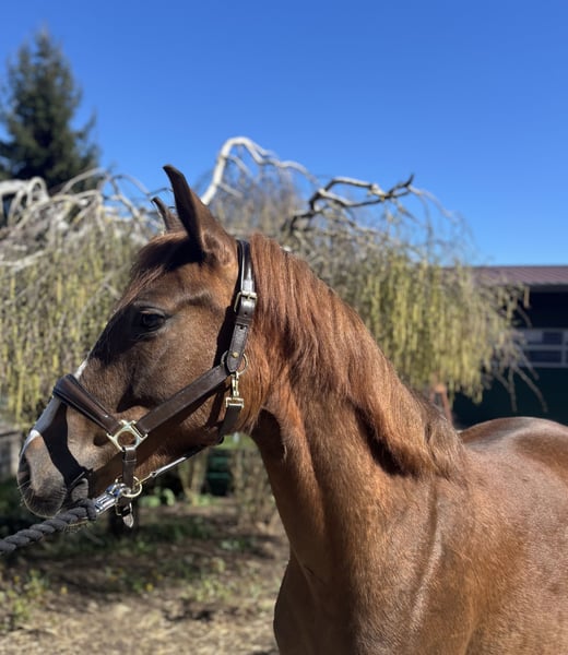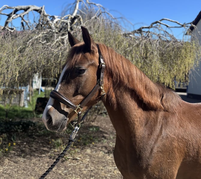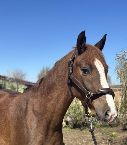 This charming dark chestnut gelding impresses with his friendly and outgoing nature, as well as his promising basic training. He is well-schooled and suitable for both leisure riding and aspiring young riders. A reliable partner with great potential for further development.