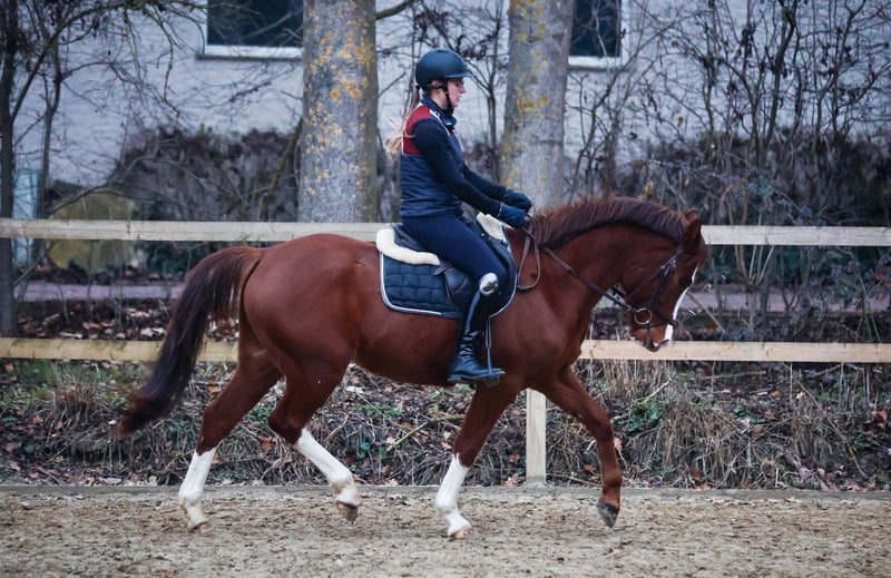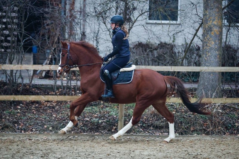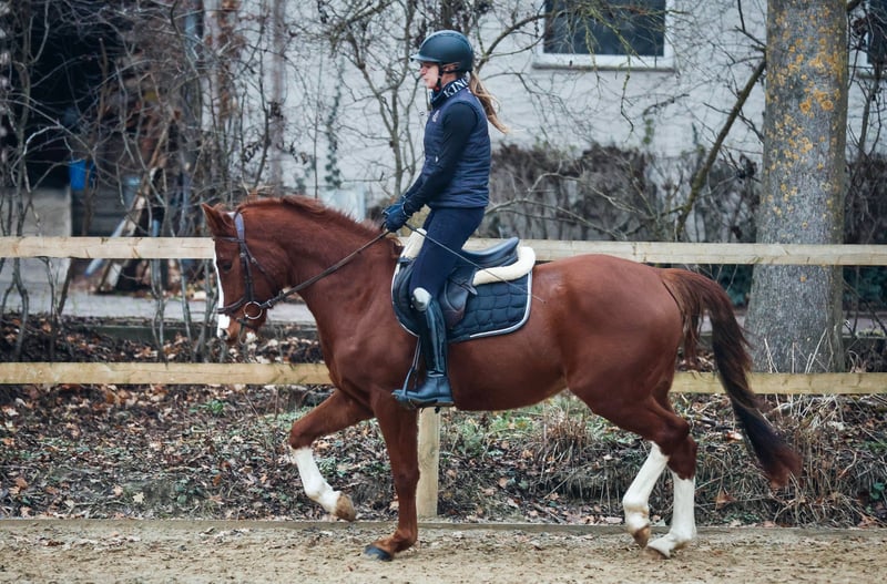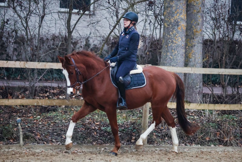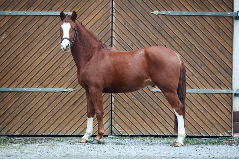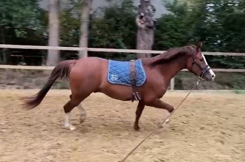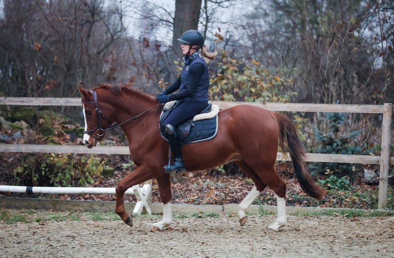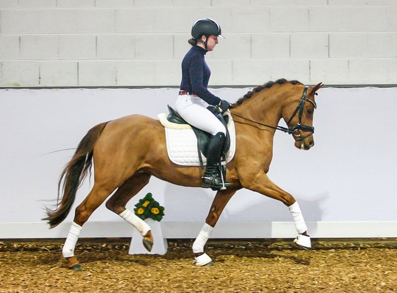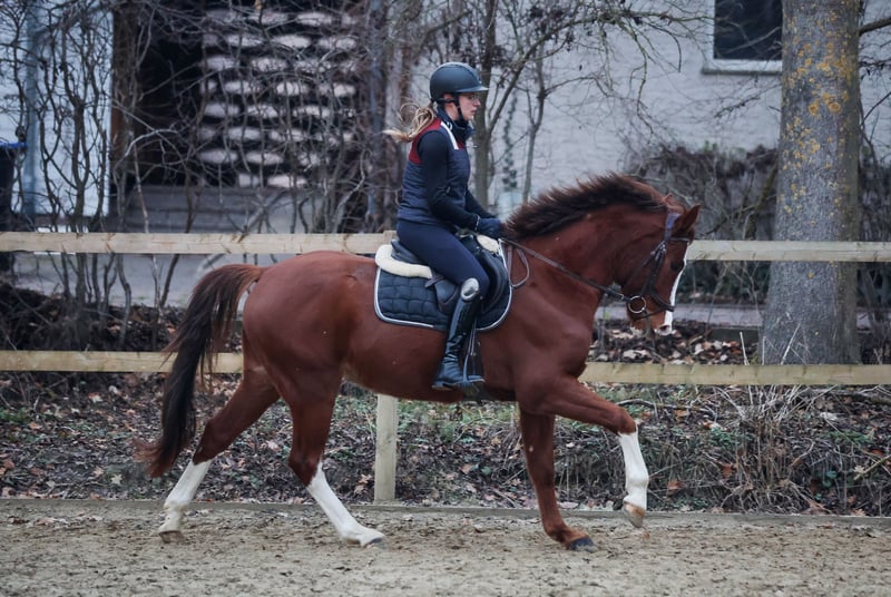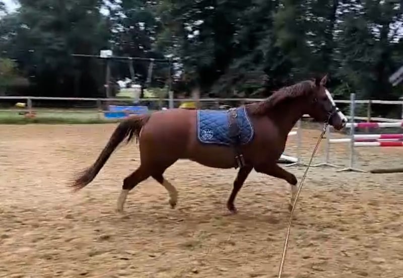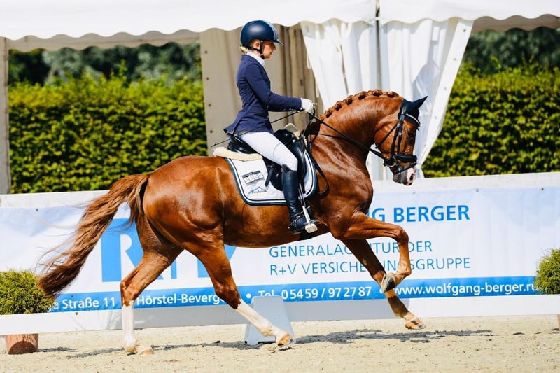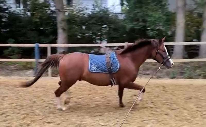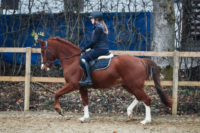 Terbofens Quick III stammt aus einer sporterfolgreichen Anpaarung. Er befindet sich seit August in der Ausbildung und lässt sich in allen Gangarten fein und locker reiten. Er lernt sehr schnell und auch das anreiten war total unkompliziert. Quick III ist das perfekte Pony für den großen Dressursport. Auch als Familienpferd könnten wir ihn uns vorstellen, da er sowohl kleine und auch große Reiter gut abdeckt. Wunderschön gezeichnet mit 3 hoch weißen Beinen, sportlich aufgemacht mit herausragenden Gangarten und einem neugierigen aber ausgeglichenen Gemüt, er möchte immer gefallen. Seine hohe Leistungsbereitschaft gepaart mit seinem ruhigen und liebevollem Gemüt machen ihn zu einem Pony, welches uns jeden Tag bei der Arbeit sowie im Umgang sehr viel Freude bereitet. Er ist sehr verschmust. Er hat jetzt eine umfassende Grundausbildung erhalten und kann bei kontinuierlicher Winterarbeit und Konditionsaufbau in Dressurprüfungen eingesetzt werden. Er hat eine hervorragende Arbeitseinstellung und versucht seinen Reiter immer zu verstehen. Seine Geschwister sind hoch erfolgreich im Sport: Terbofens Quick I (im Sport unter dem Namen Grenzhoehes Quattro unterwegs) ist in Dressurprüfung Kl. S* /Prix St. Georg plaziert . Bild Nr. 15 Terbofens Quick II war 4-jährig beim BuCha plaziert, hat 5-jährig die Quaili zum BuCha gewonnen und ist erfolgreich in Dressurpferdeprüfung L** und in FEI-Prüfungen siegreich/plaziert. Bild Nr. 16 u. 17 Terbofens Queen Two bekam ein Stutfohlen und wurde 02.2021 nach Irland verkauft und ist dort siegreich in FEI -Prüfungen. Bild Nr. 18 u. 19 Aufgrund des Ausbildungsstands ist Quick aktuell (noch) nicht für Anfänger geeignet. Er wird direkt vom Züchter nur in sportlich fördernde Hände verkauft. Nicht an Händler oder Schulbetrieb..