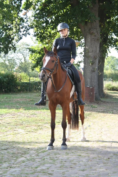Na een zorgeloze opfok en zorgvuldige opleiding is het tijd voor Dantes Inferno om een nieuw thuis te vinden. Deze vierjarige ruin valt vooral op door zijn unieke karakter. Hij is nieuwsgierig, oplettend en zeer mensgericht. Zijn onwankelbare vertrouwen in de mensen om hem heen maakt het werken met Dantes Inferno tot een groot plezier. Dit geldt zowel voor het werk onder de ruiter als aan de hand. Dantes Inferno heeft een duidelijk gereguleerde en ijverige stap, krachtige drafbewegingen en een ritmisch galop. Hij voert kleine sprongetjes gemotiveerd en met de nodige voorzichtigheid uit. In het terrein is hij zowel samen met andere paarden als alleen rustig en betrouwbaar. Dantes Inferno is uitsluitend door amateurruiters gereden. Geboorte, opfok en opleiding komen uit één hand. Ook langere rijpauzes vormen geen probleem bij voldoende beweging. Zijn moeder is op 25-jarige leeftijd nog steeds in topvorm en wordt regelmatig gereden. Wie op zoek is naar een betrouwbare vrijetijdspartner kan gelukkig worden met Dantes Inferno. Video's zijn op aanvraag beschikbaar via WhatsApp.
