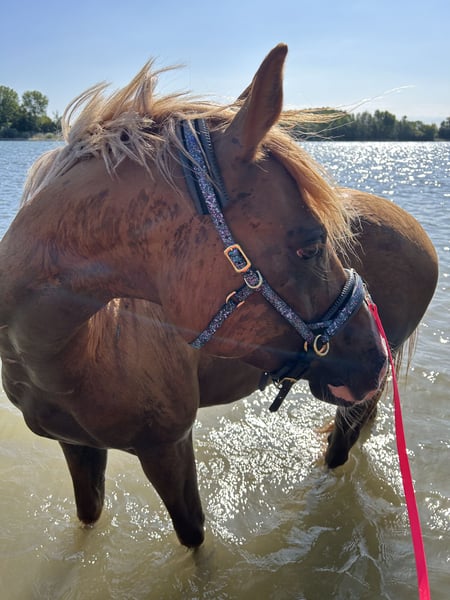 Winnie🩷 (GANZ LESEN!) Zum Verkauf steht dieser wunderschöne Fuchs Wallach (DRP) geboren im Jahr 2021. Er wird aktuell schonend angeritten und läuft schon brav mit Reiter an der Longen. Egal, an welchem Ort wir bisher gemeinsam waren (Wasser, Wald, fremde Reitplätze/hallen, usw.) er zeigt sich ruhig und gelassen. Er ist brav im Umgang und zeigt bereits vielversprechende Fortschritte in der Ausbildung. Ob im Gelände oder in der Halle, Winnie ist stets motiviert und bereit, Neues zu lernen. Aktuell steht er in einem Offenstall in einer kleinen Gruppe. Er kennt gemischte Herden und zeigt sich im mittleren Rang. Vom Boden aus wurden bereits Sprünge (Stangen/Baumstämme) überwunden. Hier zeigt er einen super Sprung. Leider hat er Equines Asthma diagnostizieret bekommen und soll daher in einen Allergiker freundlichen Stall. Das Asthma wurde allerdings in einem sehr trockenen Sommer mit schlechterer Heuqualität festgestellt. Aktuell ist er mit wenig Aufwand komplett Symptomfrei. Winnie eignet sich zukünftig super für einen ambitionierten Freizeitreiter. Der Preis ist Verhandlungssache und es gilt Platz vor Preis. Einfach anschreiben und kennenlernen :)
