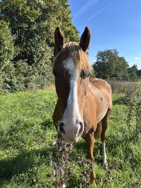 **Sales Advertisement: German Riding Pony Gelding** For sale is a beautiful German Riding Pony gelding, born in 2021. With his elegant chestnut coat and a height of 153 cm, he is the ideal partner for versatile activities. This talented pony gelding shows great potential in eventing and is suitable for both leisure and competition. His friendly and open nature makes him a pleasant companion. He is well-mannered, easy to handle, and already shows promising progress in his training. Whether in the field or in the arena, the gelding is always motivated and ready to learn new things. If you are interested or have further questions, we look forward to hearing from you! Feel free to visit us to get to know this great gelding in person. !!!! Unfortunately, he has been diagnosed with Equine Asthma and therefore needs to be in an allergy-friendly stable!! Currently, his breathing is unremarkable. The price is negotiable, and placement is prioritized over price.