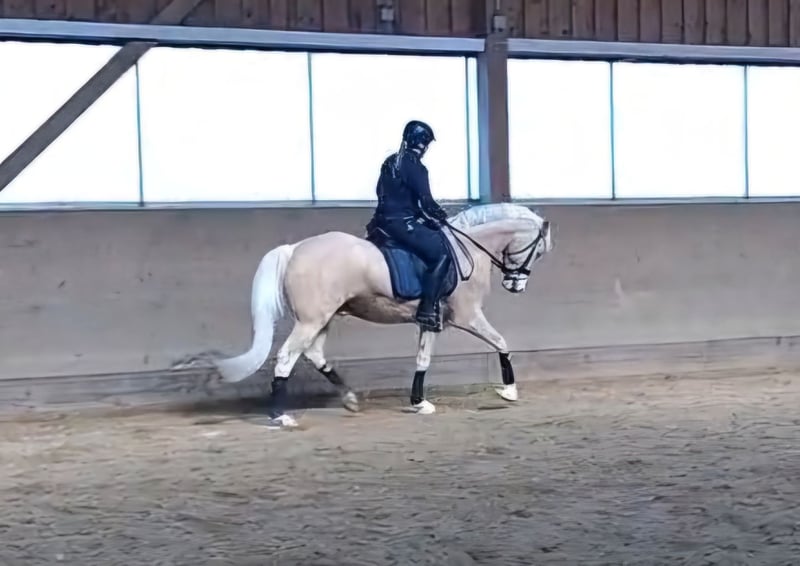 Hochtalentierter 4-jähriger Wallach – direkt vom Züchter Zum Verkauf steht ein hochtalentierter 4-jähriger Wallach direkt aus Züchterhand. Der Wallach überzeugt durch seinen hervorragenden Charakter, seine große Arbeitsbereitschaft sowie seine angenehme Rittigkeit. Er befindet sich aktuell in altersgerechter Ausbildung und ist auf dem Weg zu seinen ersten Turniereinsätzen. Unter dem Sattel präsentiert er sich sehr lernwillig, ausgeglichen und motiviert. Alle drei Grundgangarten sind bereits sicher vorhanden und gut zu reiten. Ein vielversprechendes Nachwuchspferd mit Perspektive für den Sport, das sowohl durch seine Qualität als auch durch sein zuverlässiges Wesen überzeugt. TÜV vorhanden. Allerdings hat der Wallach vorne rechts ein leichten Bockhuf Bei ernsthaftem Interesse freuen wir uns über Ihre Kontaktaufnahme.