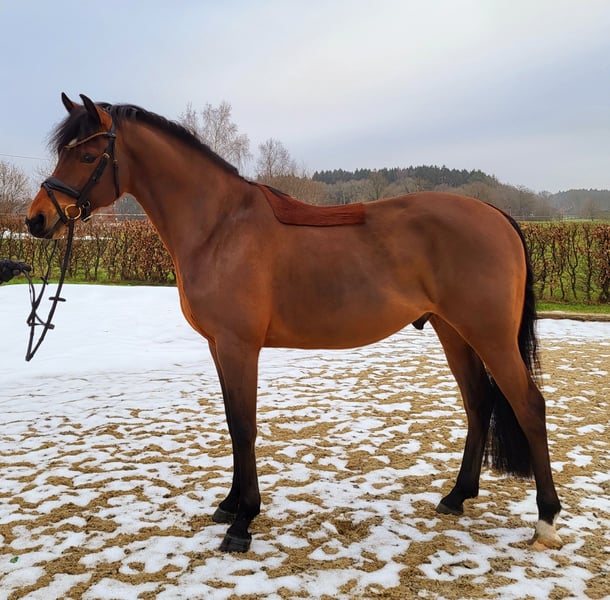 Traumpony zum Verlieben! Nogger HW ist ein brauner Wallach von Neverland, Dance Star AT, Don Joshi AT und ist 146 cm groß. Mit seiner charmanten Art wickelt er jeden um den Finger. Sehr schicker Hengsttyp, verschmust und absolut lieb im Umgang. Bereits 2023 konnte Nogger HW seine überdurchschnittliche Qualität im Rahmen der Körung des Ponyverbandes Hannover in Verden unter Beweis stellen und ein positives Körurteil erhalten. Er ist mittlerweile kastriert und hatte 3-jährig nach der Körung einige Monate frei zum wachsen. Mit seiner unkomplizierten und rittigen Art hat Nogger HW schon ein wenig Turnieratmosphäre kennengelernt. 3-jähirg wurde er 4. auf dem Landeschampionat und konnte sich letzte Saison bereits in Dressurpferde A gegen Großpferde hoch platzieren. Er ist schmiede- und verladefrom. Nogger HW ist bei uns geboren, aufgewachsen und ausgebildet. Also direkt vom Züchter in allerbeste Hände und nur mit tollen Haltungsbedingungen zu verkaufen.