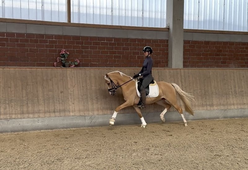 This beautiful Palomino gelding impresses not only with three very good basic gaits but also with a great temperament. Due to his high rideability and ideal size, he is certainly a great young pony for FEI sport. A good breeding inspection is already available.
