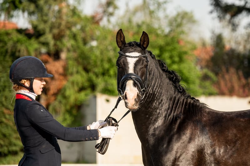 MonAmi Man in Black is one of the few sons of the great Petit Magic Colour. He is a typy riding pony stallion who always stands out immediately, with an outstanding movement quality and temperament as well as absolutely brilliant rideability. Light in the hand, always willing to work, and well-trained, he learns his lessons extremely quickly. He can be handled as a stallion by children without any problems and already placed second in a riding horse test at his first competition in 2023, behind our equally outstanding older German Sport Horse stallion. In his two other competition starts in 2023, he was placed fourth behind older warmbloods. He was nominated for the Bundeschampionat 2023 but could not be presented there due to a long-term illness of the rider. In 2024, he was not shown for the same reason. In 2025, he was immediately highly placed in his few competition starts in A-level dressage horse tests. A good radiological vet check from 2023 is available. He is a son of RM Valentina, who has already produced the highly successful state premium mare Dabia Dior and a licensed son. Dabia Dior is a multiple vice-Bundeschampion and successful at FEI levels. MonAmi Man in Black is also a candidate for licensing but has not yet been presented due to time constraints. He can certainly be collected and can stay with us as needed. In handling, he is a treasure, loves to cuddle, is always very well-behaved at the vet, and loads onto the trailer or truck without any problems. Video available upon request.