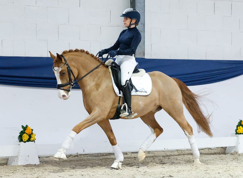 In unserer Kollektion stehen streng selektierte Reitponys f�r alle Anspr�che: Ausbildungs-, Zucht- und Kinderponys Hier gelangen Sie zur Gesamtkollektion: https://ponyforum.auction Siegreich und platziert in Reitpferdeprüfungen Platz 6 Finale Bundeschampionat 3j Reitponys Platz 9 Bundeschampionat 4j Reitponys Ein Championatspony für größere Aufgaben! Deister K konnte seine beeindruckende Qualität schon mehrfach unter Beweis stellen. Seine Karriere begann als Prämienhengst bei den Ponyforum Hengsttagen, hier wechselte er zu seiner Ausbilderin Hanna Richter und startete seine Karriere unter dem Sattel. Hanna Richter konnte bereits Deisters Vater Dallmayr K erfolgreich in Dressurprüfungen der Klasse S präsentieren! Deister K wurde drei- und vierjährig für das Bundeschampionat nominiert, dreijährig platzierte er sich auf Rang 6 und vierjährig auf Rang 9 – er zählt damit zu den besten Dressurnachwuchsponys Deutschlands! Nun wird er Zeit für einen neuen Lebensabschnitt mit einem jungen Reiter im Sattel. Der Wallach ist absolut vorbildlich ausgebildet und kann umgehend in Dressurpferdeprüfungen der Klasse A eingesetzt werden, alle Lektionen sind sicher abrufbar. Deister lernt schnell und nimmt neue Aufgaben begeistert an! Wer nach Warendorf will, sollte sich dieses Pony genauer anschauen!