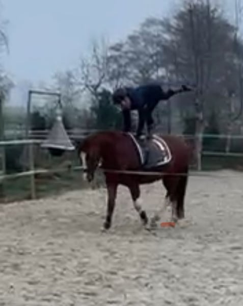 Zum Verkauf steht ein fünfjähriger Wallach aus unserer eigenen Zucht. Mit einem Stockmaß von ca. 1,53 m ist er ideal für kleinere Erwachsene sowie für Kinder geeignet. Er ist seit August unter dem Sattel und zeigt sich dabei sehr lernwillig und brav. Dressurmäßig ist er gut angeritten und macht seine Arbeit stets zuverlässig und motiviert. Im Umgang ist er absolut artig, sehr menschenbezogen und verschmust – ein wirklich lieber und kopfklarer Wallach. Auch das Voltigieren haben wir bereits ausprobiert, was er gelassen und unkompliziert gemeistert hat. Im Freispringen zeigt er ebenfalls gutes Vermögen und eine schöne Übersicht, sodass er durchaus doppelt veranlagt ist. Unter dem Reiter wurde das Springen bisher noch nicht weiter gefördert. Ein unkompliziertes, freundliches Pony mit solidem Ausbildungsstand und viel Potenzial für die weitere Förderung in liebevolle Hände abzugeben.