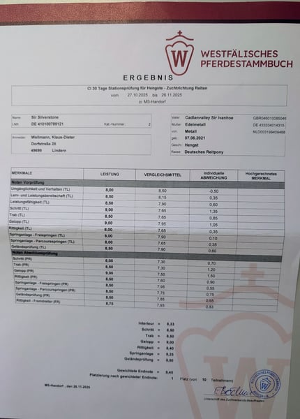 Viene offerto un bellissimo stallone di pony da dressage tedesco, nato nel 2021. Questo elegante buckskin è un vero punto di riferimento per ogni appassionato di dressage. Lo stallone si distingue per la sua qualità di movimento superiore alla media. Nonostante la sua predisposizione alle prestazioni e la presenza imponente, è facile da gestire sia nel rapporto quotidiano che sotto la sella, con una mente lucida e sempre concentrato. È già ben avviato nel dressage e mostra un grande potenziale per ulteriori progressi nella formazione. Questo stallone rappresenta anche un’offerta molto interessante per i cavalieri di salto ambiziosi che cercano un giovane cavallo per le gare di salto, così come per i proprietari di stalloni che apprezzano un livello di prestazioni certificato. Per ulteriori informazioni o per un eventuale interesse, saremo lieti di ricevere il vostro contatto. È possibile visitare il cavallo di persona previo accordo.