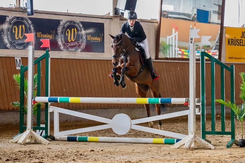 For my 6-year-old German Riding Pony, "Clemens van de Küst," I am seeking a new home where he will be appreciated and supported. He is accustomed to being ridden by children but requires consistent training or an experienced rider, as he possesses a lot of ambition. Clemens has been in my possession since he was a foal and is truly a treasure. With a very good attitude towards sport, he has achieved placements in elementary show jumping classes (A*) with 14-year-old girls. In the arena, he is always motivated; he performs flying changes and finds the right distance to the jump. There is potential for L and M classes, making him ideal for the Pony Tour. He stands in a modern, slightly refined frame and measures 147 cm. He is familiar with cross-country obstacles up to A* level (including steps, edges, ditches, water, logs, etc.) and is very fearless. Clemens is farrier- and loading-trainable, well-behaved in handling, and has even been ridden without a saddle. He knows free jumping and can go cross-country alone or in a group. Clemens is currently in full training and can be tried at any time. A veterinary certificate (TÜV) is not available yet but can be arranged at the buyer’s expense. I am looking for a home for Clemens with a family environment that values versatile training and development.