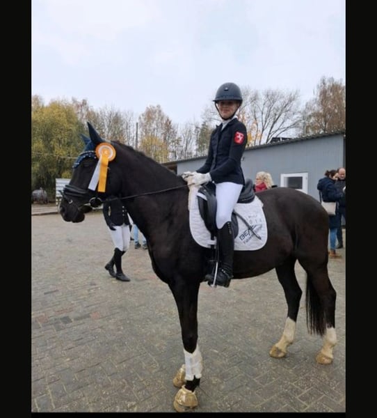 Zum Verkauf steht unser wunderschöner 6-jähriger Ponywallach mit dem Spitznamen Jürgen. Er ist bereits siegreich in Dressurreiter-A und E-Springen mit einer 11 jährigen Reiterin. Außerdem ist er Dressurpferde-A gegen Großpferde platziert. Jürgen ist ein absolut kopfklares und nervenstarkes Pony, welches für jeden Spaß zu haben ist. Aufgrund seines Alters ist er noch nicht als komplettes Kinderpony geeignet, sollte aber mit ein wenig Unterstützung kein Problem sein. Er ist absolut Schmiede-und Verladefromm, kann alleine und zu zweit transportiert werden und bleibt auch alleine auf dem Anhänger. Er ist sehr robust und geht bei uns bei Wind und Wetter mit seinem Ponykumpel raus. Wir wünschen uns daher ein absolutes Traum-Zuhause für ihn. Er wird nur verkauft, da wir noch 2 andere Pferde haben und ihm zeitlich nicht mehr gerecht werden. Kein Notverkauf! Er stammt ab von Coer Noble x Can Dance. Für dieses Jahr mit 1,48 mit Eisen eingemessen. Läuft aktuell aber auch barfuß.