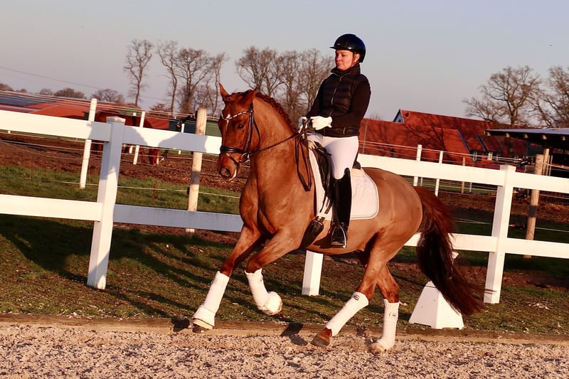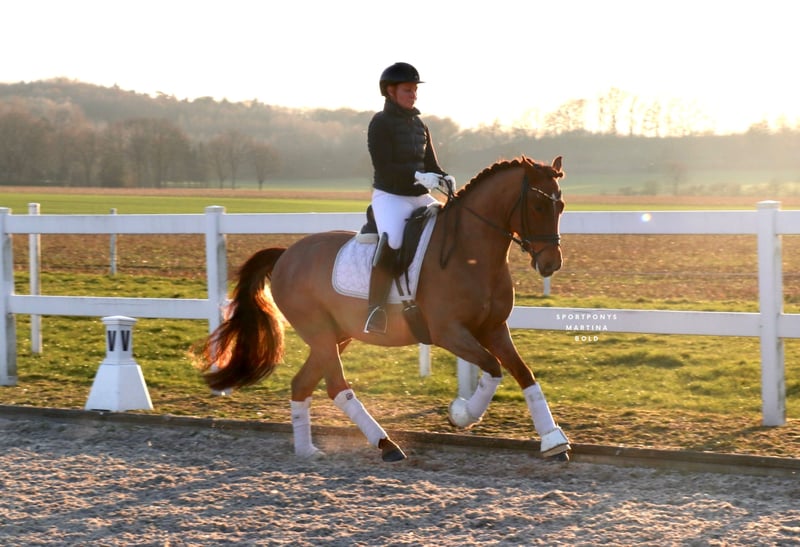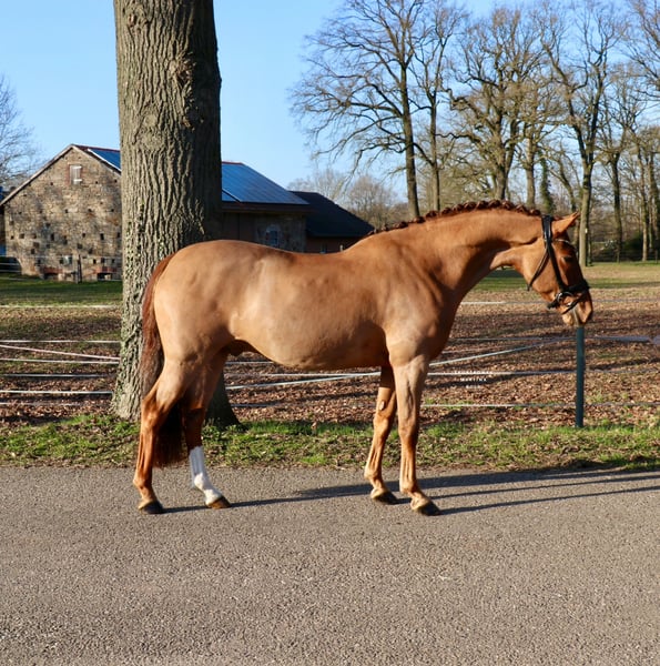 | Werbung | | DR | Wallach | Fuchs | *2020 | 148 cm | v. Quarterback’ Junior x Centauro’s Golden Flashlight „Quality“ ist ein sehr schick aufgemachter Wallach, der neben seiner Optik mit drei sehr guten Grundgangarten und einer tollen Rittigkeit überzeugen kann. Der Wallach ist leicht in der Anlehnung und sehr sitzbequem. Im Umgang ist er sehr brav und verschmust. Seine Rittigkeit und Arbeitseinstellung konnte „Quality“ bereits 5-jährig bei seinen Turnierstarts unter Beweis stellen. So konnte er sich neben einigen Platzierungen und einem Sieg in einer A-Dressur bereits in einer Dressurprüfung der Klasse L platzieren. „Quality“ ist bereits sehr sicher und weit ausgebildet, so dass er bei weiterer Förderung zeitnah in FEI-Prüfungen eingesetzt werden kann. https://youtu.be/9BD8ptzV4GI?is=Dp5NlcF8v6_Ljh7m Bei ernsthaftem Interesse melden Sie sich gerne telefonisch unter der +491707941333.