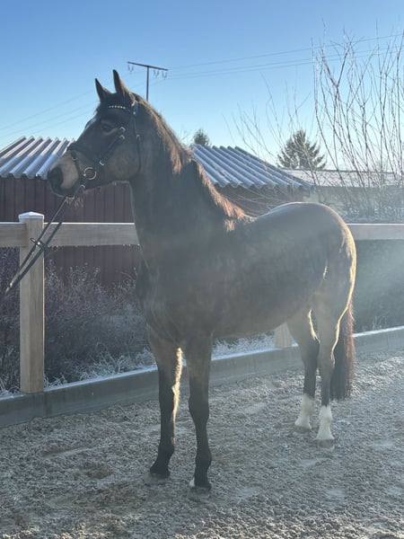 For sale: German riding pony – ideal for dressage! A beautiful bay gelding born in 2019 is available. Standing at 155 cm, he is perfect for ambitious riders seeking a reliable and talented horse. This pony is versatile in dressage and impresses with his elegant appearance and willingness to learn. He is friendly to handle, well-trained, and already shows great potential for advanced dressage lessons. If interested and for further information, please feel free to contact me. This special riding pony is looking for a new, caring rider who wants to develop his skills.