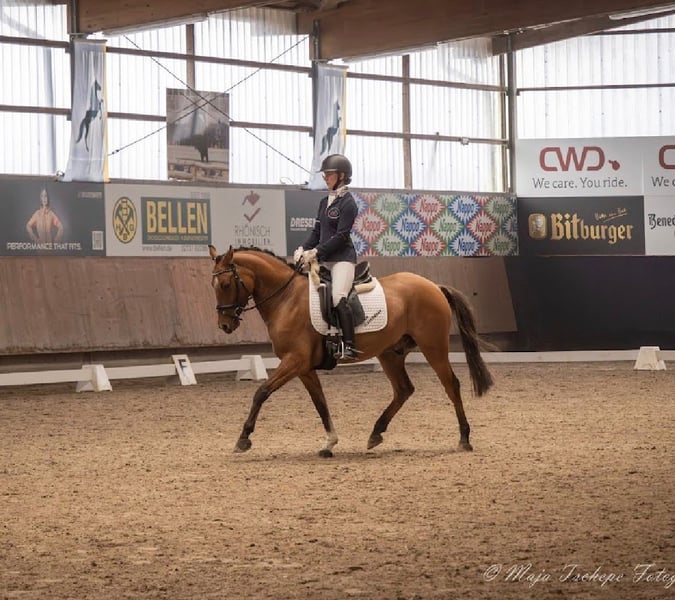 Harry wird im Auftrag über unsere Seite angeboten. Sein Standort ist in Wegberg Harbeck, wo er in einem tollen Offenstall lebt und ausgebildet wird. Den direkten Kontakt zum Besitzer bekommt ihr über +4917654441931 Harry ist ein toller, vielseitiger Ponywallach, der altersgerecht ausgebildet wird. Seine ersten Turniererfahrungen hat er - dank seines tollen Charakters - in Dressurreiterprüfungen mit Kindern sammeln können. Das er nervenstark und sicher ausgebildet ist, konnte er auf seinem ersten CHU für die Düsseldorfer Studentenreiter beweisen. Hier lief er mit 3 Reitern und einer Vorbereitungszeit von je 3 Minuten sicher die A Runde mit. Auch beim Springen hat er viel Spaß und nimmt erfahrene, wie unerfahrene Reiter sicher mit. Im Gelände und Straßenverkehr ist er ebenfalls sicher und routiniert unterwegs. Kennen lernen könnt ihr ihn nach telefonischer Absprache unter der oben genannten Nummer.