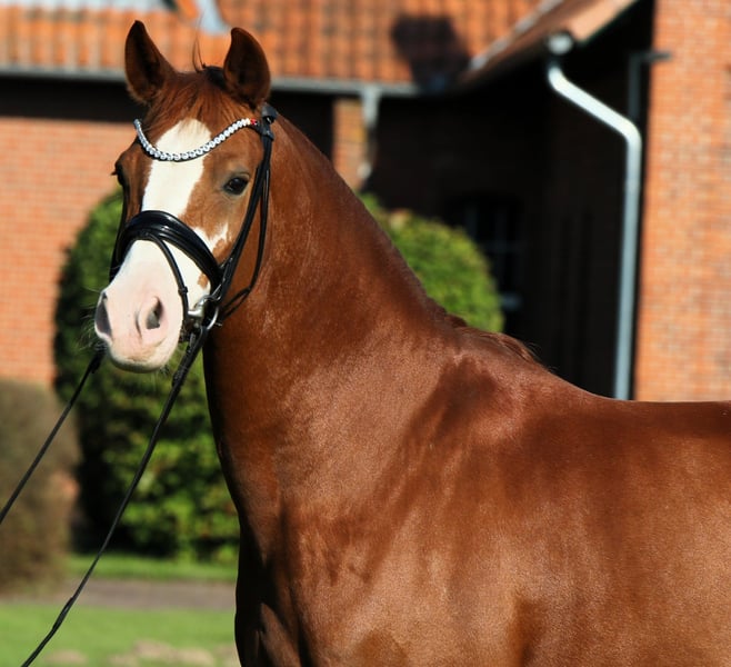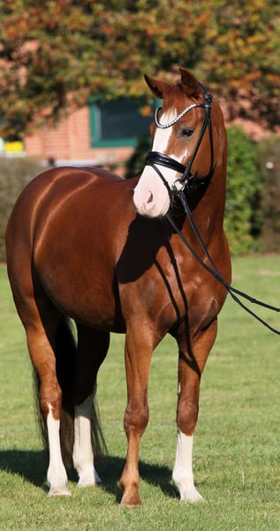 This beautiful, eye-catching pony gelding is looking for his people. As a young pony, he was the reserve champion of his licensing and has achieved successes in riding horse competitions up to dressage level L - White Nose has done everything right. However, he is so incredibly well-behaved and composed that he does not feel comfortable as a sport pony for more and FEI. We are looking for a family with children or a nervous rider who finally wants to fulfill the dream of riding without fear. The gelding is truly exceptionally well-behaved; he can be trusted 10000% for lead line, pony games, trail riding, and riding without a saddle - these are things you can count on with this pony. Who is looking for a life insurance? The pony has a very good vet check. Come by and fall in love!