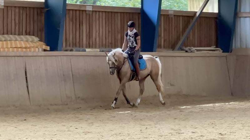 Schweren Herzens suche ich für meinen sensiblen, traumhaften Palominowallach ein neues, liebevolles Zuhause. ✨ Er ist einfach ein Herzenspferd – bildschön, fein im Charakter, verschmust und immer bemüht, seinem Menschen zu gefallen. • Deutsches Reitpony XL, Wallach, geb. 2019 • ca. 152 cm, Palomino, volles Papier • Barhuf, gesund, Zähne gemacht, regelmäßig geimpft (Tetanus, Influenza, Herpes), Physio & Osteo • Aufgewachsen in artgerechter Jungpferdeherde, kennt Offenstall, 24/7 Weide und Paddockbox mit Weidegang • Brav im Umgang, sehr menschenbezogen und sozial verträglich Er wurde im Mai 2024 schonend angeritten, durfte den Sommer über noch einmal Pause machen und wird seit Oktober 2024 wieder regelmäßig drei Mal pro Woche geritten. Er zeigt sehr gute GGA, springt mit Freude und hat einfach unglaublich viel Qualität und Charme. Da er sensibel und noch in Ausbildung ist, wünsche ich mir für ihn einen erfahrenen, geduldigen Menschen, der ihn weiter fördert und ihm Zeit zur Entwicklung gibt. noch Kein Anfänger- oder Kinderpferd. Eine Kombi aus erfahrener Mutter und gut reitendem Kind oder eine erfahrene Jugendliche mit entsprechendem reiterlichen Können könnte ich mir auch gut vorstellen. Verkauf nur an Privat in absolut gute, fördernde Hände mit artgerechter Haltung. Keine Videosammler – wer ernsthaft Interesse hat, darf ihn gerne kennenlernen. Probereiten nach Vereinbarung (30 €, werden beim Kauf verrechnet).