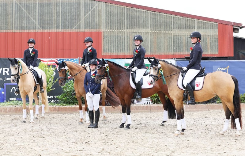 Djulyo, debido a su tamaño, fue montado con retraso y solo en los últimos seis meses ha recibido una preparación más intensiva. Acaba de debutar en competición y ha obtenido su primera roseta. Incluso ya conoce el trabajo en equipo y le encanta viajar en remolque. Es un poni ideal para pequeños adultos o jóvenes experimentados con mano delicada. Actualmente se encuentra en un nivel seguro de A, pero tiene poca motivación para montar. Prefiere ser montado solo 2 o 3 veces por semana y, sobre todo, disfruta del trabajo en el suelo o de hacer trucos. Es muy inteligente, aprende rápido y siempre quiere aprender algo nuevo. No es para personas aburridas, sino para quienes buscan un desafío. Solo una prueba de manejo no funciona con él, ya que no le caen bien las personas que no conoce... por lo que hay que visitarlo varias veces y, preferiblemente, dedicarle tiempo en el suelo, no solo montarlo y bajarlo. Él elige a su jinete... Con riendas en triángulo, ya ha montado en clases con niños, pero debería seguir siendo entrenado regularmente por un jinete experimentado. Acabamos de empezar a saltar, y también lo hace muy bien. TÜV sin informe, realizado cuando tenía 3 años.