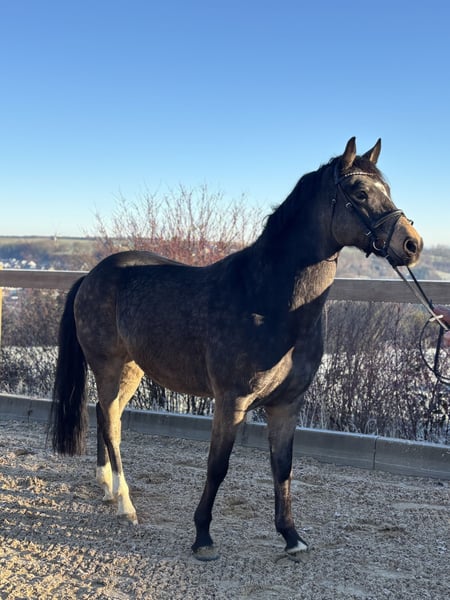 For sale: German riding pony – ideal for dressage! A beautiful bay gelding born in 2019 is available. Standing at 155 cm, he is perfect for ambitious riders seeking a reliable and talented horse. This pony is versatile in dressage and impresses with his elegant appearance and willingness to learn. He is friendly to handle, well-trained, and already shows great potential for advanced dressage lessons. If interested and for further information, please feel free to contact me. This special riding pony is looking for a new, caring rider who wants to develop his skills.