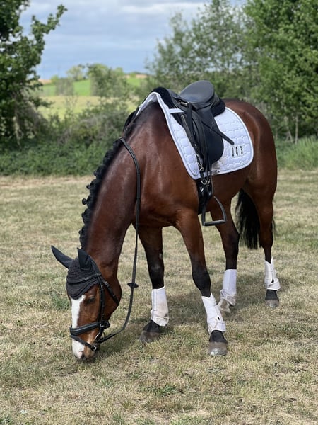 🐴 German Riding Pony, 4'9" (1.44 m), Brown 🌟 Charming all-rounder with heart and talent – German Riding Pony, 7 years old 🪻A pony like springtime – full of joie de vivre, sensitive, and ready to win hearts. • Name: Monacco • Breed: German Riding Pony • Height: 1.44 m (14.4 hh) • Color: Brown • Gender: Gelding • Age: 7 years • Stabling: Boxed, accustomed to 24/7 turnout on pasture • Training level: Dressage & jumping up to E level • Location: 23923 Ollndorf 🏇 Description We bought Monacco at age 4 for our daughter (then 10), and he has been part of our family ever since. She has grown with him, learned to ride, and has been regularly coached. Now, at 14, she has outgrown him. We have taken the step to a larger horse and realize we can no longer do him full justice as riders. It is with a heavy heart that we want to sell Monacco—to a loving home that will nurture his sensitive nature and further develop his potential. This beautiful gelding brings daily joy with his fresh, spring-like personality, his fine rideability, and his affectionate character. With a height of 1.44 m, he is ideally suited for ambitious children, teenagers, or smaller adults seeking a versatile pony. Thanks to his curious nature, he approaches new situations openly and responds delicately to his rider’s aids. He is very sensitive and quickly forms a close bond with his handler, making him a particularly trustworthy partner. Whether for dressage, jumping, or relaxed rides in the countryside—he always shows motivation, eagerness to learn, and willingness to perform. He remains calm and composed even in traffic. Due to his young age, he is eager to be further trained and developed—he has all the best prerequisites to grow under a suitable rider. In daily handling, he is a true gem: friendly and people-oriented—patient, cautious, and attentive even with children. He remains a pony—with all the charming independence that makes this wonderful breed special. A partner who impresses not only with his sporting ability but also with his heart. ✅ Special features • Three distinct gaits with active hindquarters • Well-handled—suitable even for less experienced riders • Easy to keep in open stable, box, or with 24/7 pasture turnout • Dressage & jumping at E level • Regularly vaccinated and dewormed • Farrier- and loading-friendly • Regular dental care • Regular hoof care 🎯 Areas of use • Dressage • Jumping • Leisure riding • Trail riding • Pony competitions 📩 Contact If seriously interested, we look forward to hearing from you. Our heart pony is waiting for someone who appreciates his sensitive nature and wants to explore new paths together. Viewings and trial rides can be arranged individually.