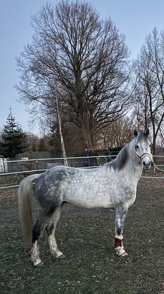 Lieve ponyvrienden, onze prachtige, betrouwbare pony Karlo, een schimmel van 145 cm schofthoogte, is zeer fijn te rijden, springt ontzettend graag en is zelfs geschikt voor coaching. Helaas kan hij niet goed tegen de pollen/stof uit Brandenburg en heeft hij of berglucht of zeelucht nodig zonder directe landbouw in de buurt, evenals gestoomd hooi. We geven hem alleen in de allerbeste handen en willen de plek zien waar hij mag intrekken. Hij staat 24/7 op de wei met een open stal, wat ook zo moet blijven. Hij kan ook graag samen met merries staan, wat hij verkiest ;). Als jullie serieuze interesse hebben in deze geweldige pony, neem dan gerust contact met ons op.