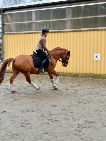 For sale: German Riding Pony gelding, born in 2018, in stunning Red Dun. Standing at 14.5 hands, he is perfect for an ambitious rider seeking a versatile and reliable partner. The gelding demonstrates exceptional talent in dressage and is already well-trained. His friendly nature and eagerness to learn make him an ideal partner for dressage as well as for advanced leisure riding. He is a true all-rounder, capable of handling small jumps with confidence and calm, although this is not currently being emphasized. What sets him apart is his calm demeanor, whether at home or after trailering; he stands relaxed at the tie and enjoys being pampered. Long solo hacks and rides in unfamiliar terrain are no problem for him. He thrives on varied work. I am looking for his dream home in an open stable or at least a paddock box with plenty of turnout in a harmonious herd ❤️ If you are interested, we look forward to hearing from you.