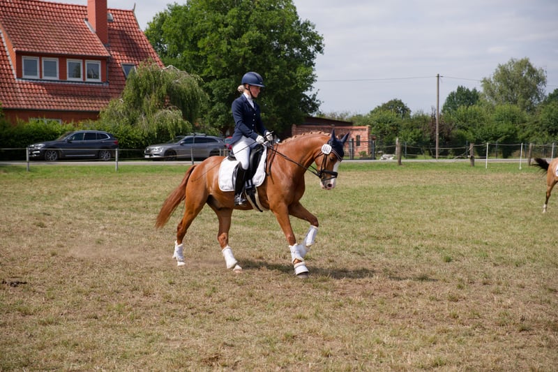 For sale is a typy German Riding Pony, 8 years old, with competition experience. The gelding has been successfully placed in both dressage and show jumping up to class A. In dressage, he is currently on a great path towards L dressage! He impresses with a pleasant temperament and can also be ridden by children. Due to his versatile training, he is suitable for both competitive riders and as a loyal leisure partner. Key data: - German Riding Pony, gelding, 8 years old - Successfully presented in dressage and show jumping up to A - Loves trail rides and is always well-behaved there - Used to being outside during the day and in a paddock box at night - Fully vaccinated and regularly dewormed - Naturally good with farriers and loading - Good veterinary examination from 2021 available