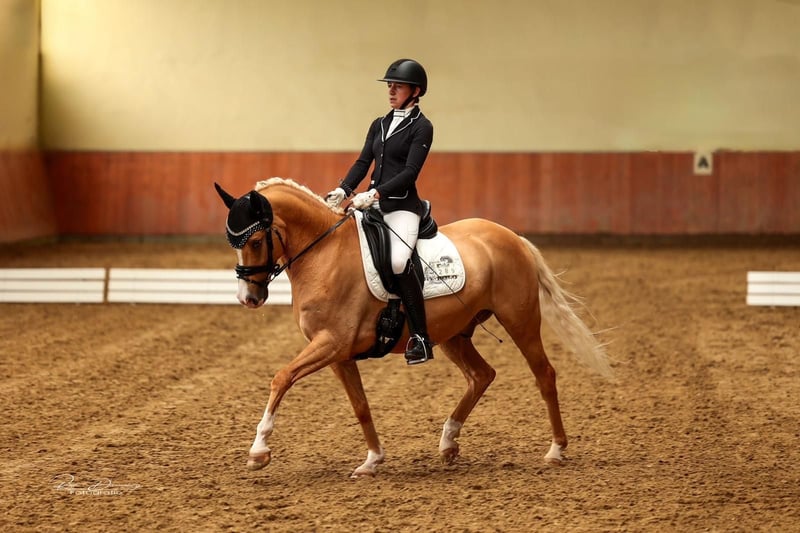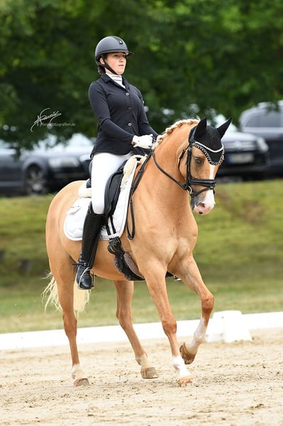 With a heavy heart, we are seeking a new home for our beautiful pony gelding. Daily Gold has been with us since he was three years old. Our daughter was 12 at the time and has achieved numerous wins and placings with him, from dressage training level to L** dressage. Last year, they competed in their first Pony FEI event and were immediately placed! He also reliably carries smaller children through competitions. At 8 years old, he is in the prime age to introduce a child to competitive riding and to continue developing further. Daily knows everything a pony should and is always up for fun! We must admit that our daughter has simply outgrown him, and he is still too young to stop being ridden, so we are now searching for a wonderful new home for him. When we purchased him, he was fully vetted and in perfect health. The current health certificate is available. He has always been healthy with us. He measures 148 cm and is correctly registered as a pony in his passport. A suitable dressage saddle in size S and all accessories can also be purchased.
