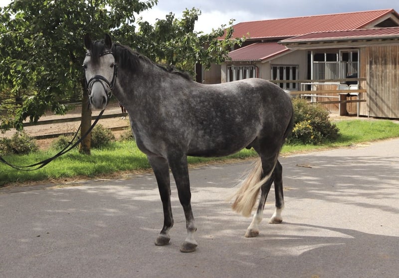 Schweren Herzens steht mein geliebtes 8-jähriges Deutsches Reitpony First Class Dance For Me zum Verkauf, da ich es zeitlich leider nicht mehr schaffe, ihm die Förderung und Aufmerksamkeit zu geben, die er verdient. „Danny" wurde als junges Pony erfolgreich von mir in Reitpferdeprüfungen vorgestellt und konnte sich dort gegen Großpferde platzieren. In den darauffolgenden Jahren wurde er erfolgreich in Dressurprüfungen der Klasse A vorgestellt und platziert. Er verfügt über drei sehr gute Grundgangarten und ist mit einem tollen Go ausgestattet. Einige L-Lektionen beherrscht Danny bereits sicher, sodass er seinem neuen Reiter in Zukunft sicher viel Freude in der Dressur bereiten wird. Im Umgang zeigt er sich stets lieb und unkompliziert und ist schmiede- und verladefromm. Aufgrund seines Temperaments und seines Go’s wird Danny nicht als Anfänger- oder reines Kinderpony verkauft. Ich wünsche mir für Danny nur das beste Zuhause mit einer Person oder Familie, die ihn fördert, weiter ausbildet und liebt. Bei weiteren Fragen melden Sie sich gerne unter: +49 162 9646567