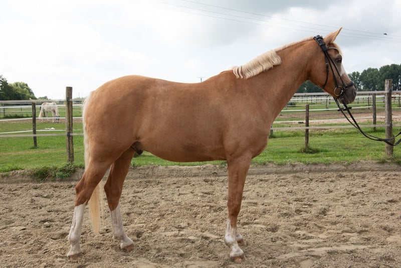 Te koop staat onze charmante rijpony-ruin. Marlo is geboren in 2017 en valt op door zijn vriendelijke aard en elegante uitstraling. Met een stokmaat van 148 cm is hij perfect voor ambitieuze ruiters die waarde hechten aan dressuurvaardigheden. Door zijn evenwichtige temperament is hij goed geschikt voor kinderen, maar hij kan ook een kleine volwassene uitstekend dragen. Hij is geschikt voor zowel ervaren ruiters als voor enthousiaste jonge ruiters die op zoek zijn naar een betrouwbare en leergierige partner. De palomino-ruin overtuigt door zijn nobele uitstraling en veelzijdige inzetmogelijkheden in de dressuuroefeningen. Hij is goed getraind en toont veelbelovende progressie voor verdere opleiding. De pony is gezond, regelmatig gevaccineerd en ontwormd. Bij interesse of voor meer informatie horen wij graag van u.