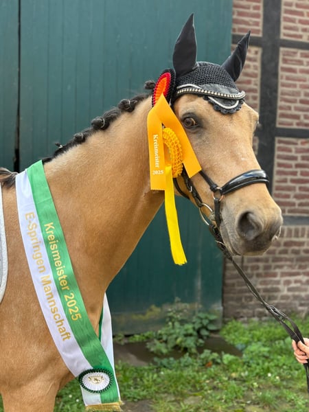 Ausdrucksstarker 8 jähriger doppelveranlagtes Deutsches Reitpony XL– sehr gut abdeckend auch für große Reiter interessant ❤️ Ich gebe diesen Traumwallach nur in ein Zuhause wo er mind.6h Auslauf egal welches Wetter erhält 🍀 Bei ernstgemeintem Interesse bitte ausschließlich anrufen 01773006222(bitte nicht anonym) Geburtsjahr :2017 Stockmaß: 1,48 m Standort: NRW Preis: VB 30.000 inkl. umfangreichem Zubehör von (Platz vor Preis) Über das Pony🍀 Dieser bildschöne und doppelt veranlagte wallach vereint Charme, Ausstrahlung und sportliche Qualität. Mit Erfolgen in Dressur, Springen und Vielseitigkeit ist er der ideale Partner für ambitionierte Nachwuchsreiter, Children- und Juniorentouren oder auch erwachsene Reiter mit sportlichen Ambitionen. Da ich aus privaten Gründen meinen Pferdebestand reduzieren möchte, wünsche ich mir für ihn ein liebevolles, förderndes Zuhause mit viel Auslauf, da ich Ihn schon länger nicht mehr gerecht werden kann. Ausbildung & Erfolge🏆 Dressur: sicheres M*-Niveau (inkl. fliegende Wechsel, ansätze von große Pirouetten) Gerade frisch L platziert. Springen & Vielseitigkeit: souverän auf E-/A*-Niveau, nie glotzig oder verweigernd,2025 erste Saisong auch im Springen vorgestellt und auf seinen ersten Kreismeisterschaften mit der E-Springmannschaft gleich Kreismeister geworden.🥇🥇🥇 Aussagekräftige Videos auch mit kleinen Jungen Reitern selbstverständlich vorhanden. Abgabe erfolgt nur wenn alles passt, kein Notverkauf und nur ins beste Zuhause mit viel Liebe,Zeit und Auslauf.❤️ Alles weitere auf aussagekräftige Anfragen mit Rufnummern hinterlassung. Das Pony wird nicht zur Verfügung gestellt!!