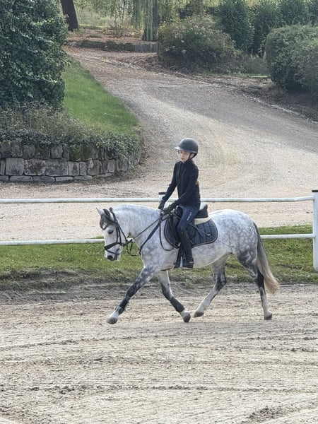 Mit schwerem Herzen suchen wir für unsere 9-jährige Stute Mercy ein neues Zuhause, da meine Tochter ihr entwachsen ist. Mercy ist seit 3,5 Jahren bei uns, wurde von meiner Tochter selbst eingeritten und hatte vor drei Jahren ein Fohlen. Sie war mehrfach erfolgreich im Reiterwettbewerb und E-Springen. 2024 hat meine Tochter auf Mercy ihr Reitabzeichen gemacht. Unter dem Sattel ist sie brav, motiviert und lernwillig. Im Umgang ponytypisch, daher wünscht sie sich eine konsequente Hand sowie erfahrene Eltern im Hintergrund. Bei guter Förderung steckt noch viel Potenzial in dieser Zaubermaus.