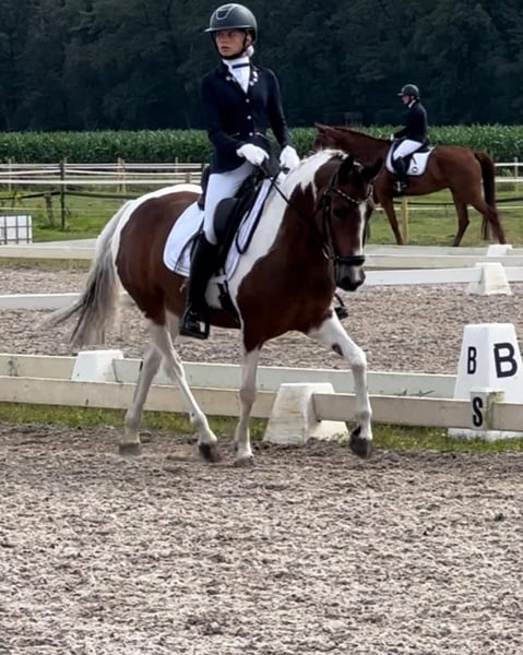 ✨ Te koop: Daylight (“Koetje”) ✨ Daylight is een bijzondere Duitse allround D sportpony, een dochter van de legendarische FS Don’t Worry. Met haar opvallende bonte aftekeningen steelt ze niet alleen de show in de ring, maar ook daarbuiten. Ze is breed inzetbaar op sportniveau: • Dressuur: Z2 startgerechtigd • Eventing: Z startgerechtigd • Springen: 0,90 cm Daylight combineert sport met karakter. Ze beschikt over gezonde looplust, is eerlijk in de omgang en werkt altijd met je mee. Een pony die je vertrouwen geeft, maar ook scherp blijft in het werk. Haar veelzijdigheid maakt haar ideaal voor een ambitieuze ruiter die graag meerdere disciplines rijdt. Maar boven alles is Daylight een pony die in je hart kruipt 🤍 Daarom gaat zij alleen naar het allerbeste huisje. De reden van verkoop is enkel dat onze ruiter de overstap maakt naar de paarden. 📍 Een unieke kans voor wie op zoek is naar een talentvolle, betrouwbare én opvallende sportpony.