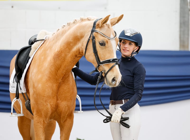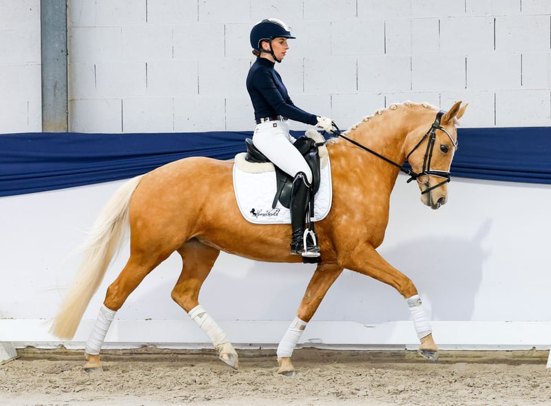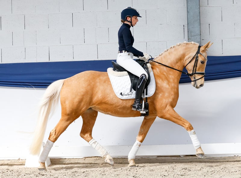 In unserer Kollektion stehen streng selektierte Reitponys f�r alle Anspr�che: Ausbildungs-, Zucht- und Kinderponys Hier gelangen Sie zur Gesamtkollektion: https://ponyforum.auction Erfolge: platziert in Dressurprüfungen Klasse A und Klasse L Ein echtes Goldstück, nicht nur bezüglich der auffälligen Palominofärbung! Arccardias Superpower ist ihre beeindruckende Unkompliziertheit, sie ist schlichtweg ein Rundum-Sorglos-Paket auf vier Hufen. Die groß aufgemachte und lang linierte Stute ist in allen Lebenslagen der Fels in der Brandung für ihren Menschen. Immer verlässlich, immer mit Übersicht, immer cool. Aber auch immer ein motiviertes Sportpony, das zB alle Dressurlektionen der Klasse L reell verankert hat. Accardia ist wirklich easy nachzureiten, steht sicher an den reiterlichen Hilfen und denkt in entscheidenden Momenten dann auch mal für ihren Reiter mit. Zahlreiche Turniererfolg belegen zusätzlich ihre gute Qualität und ihre positive Präsenz im Viereck. Sogar im Parcours und auch auf der Vielseitigkeitsstrecke kennt sie sich aus und ist auch hier sicher pilotierbar! Dazu ist sie im Umgang ausgeglichen und wenig anspruchsvoll, sie lässt sich aber schon gerne verwöhnen und nimmt aufmerksam am Alltag ihrer Menschen teil. Ein top Lehrpferd im besten Alter, deckt große Reiter perfekt ab und nimmt kleine Reiter fein genug wahr. Was will man mehr?!