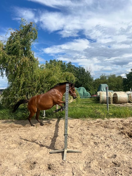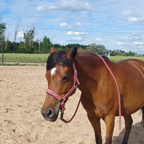 Schweren Herzens gebe ich meine 10-jährige Deutsche Reitpony-Stute Luna aufgrund von Zeitmangel in liebevolle, erfahrene Hände ab. Luna ist sehr menschenbezogen, lieb im Umgang und zuverlässig im täglichen Handling. Sie ist sowohl geritten als auch in der Bodenarbeit sicher und hat große Freude an kleinen Zirkuslektionen. Sie ist aufmerksam, lernwillig und arbeitet gern mit ihrem Menschen zusammen. Sie eignet sich nicht für absolute Anfänger, sondern für erfahrene Reiter oder Kinder/Jugendliche mit Reiterfahrung. Aktuell hat sie leichtes Übergewicht, welches mit regelmäßiger, angepasster Bewegung gut reduziert werden kann. Sie hat eine leichte Arthrose, kommt damit jedoch bei entsprechender Haltung und Bewegung gut zurecht und ist belastbar. Stockmaß: ca. 1,41 m Empfohlenes Reitergewicht: max. 65 kg Geimpft, gechippt, regelmäßig entwurmt AKU auf Kosten des Käufers möglich Zubehör (Sattel, Trensen, Abschwitzdecke etc.) kann mit abgegeben werden. Standort: Nähe Weißenfels Abgabe erfolgt ausschließlich in nachweislich gute Hände. Keine Abgabe an Händler oder für den Weiterverkauf. Probereiten bei ernsthaftem Interesse nach Absprache. Bitte zunächst per Nachricht melden.( Videos per WhatsApp möglich (longe)) Preis: 4.000 € inklusive Zubehörpaket