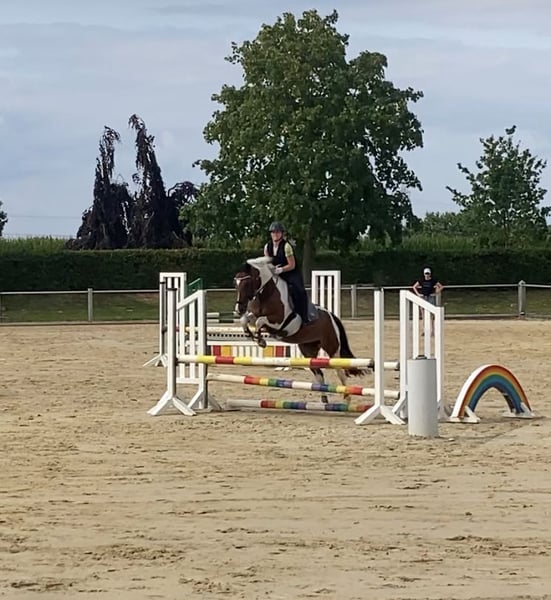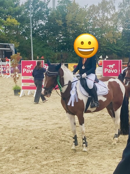 Zum Verkauf steht eine wunderschöne Scheckstute, mit einem freundlichen Wesen. Lotta ist eine ideale Begleiterin für Reiter aller Erfahrungsstufen. Sie hat ein robustes Fundament und kann daher auch gut von einem Erwachsenen geritten werden. Aber auch die kleinsten trägt sie brav von der Longe, durch eine Führzügelklasse bis hin zu den ersten Springprüfungen. Grundsätzlich ist Lotta eher der gemütliche Typ, der sich vor allem in der Dressurarbeit auf dem Platz ein wenig bitten lässt. Sie hat sehr bequeme Gänge, die gut zu sitzen sind aber demnach wenig Schwung mitbringen. Dennoch ist sie bereits in Dressurreiterprüfungen der Klasse A platziert. In Springprüfungen bis 80 cm ist sie eine zuverlässige Begleitung und ins Gelände geht sie sowohl alleine als auch in der Gruppe. Wir selbst haben Lotta für unsere 8 jährige Tochter gekauft, die aber leider kein Interesse am Reitsport hat. Unsere 11 jährige Tochter ist neben der Schule mit ihrem eigenen Pony ausreichend beschäftigt, so dass wir uns für einen Verkauf von Lotta entschieden haben. Bei Interesse oder weiteren Fragen stehe ich gerne zur Verfügung. Kontaktieren Sie mich dafür gerne unter 0163 55 99 724!