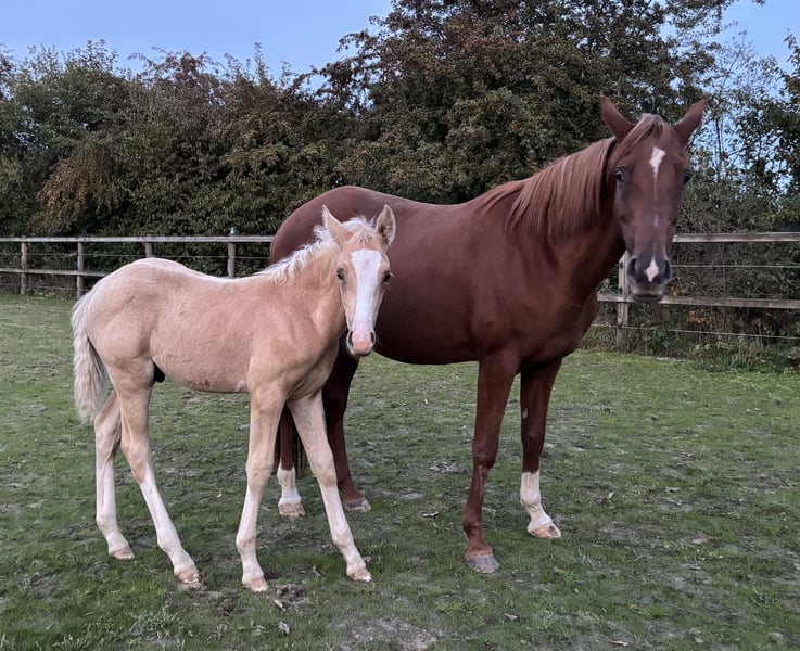 Zum Verkauf steht eine tolle, 2015 geborene Fuchsstute, mit bravem, schön gezeichnetes Hengstfohlen mit elastischen Bewegungen bei Fuß. Diese Stute eignet sich hervorragend für die Zucht. Nachkommen sind unter anderem: Glücksbote Hilgenroths Magenta Hilgenroths Magic Bei Interesse oder weiteren Fragen stehe ich Ihnen gerne zur Verfügung. Videos, weitere Bilder und Besichtigung bei Interesse natürlich möglich.
