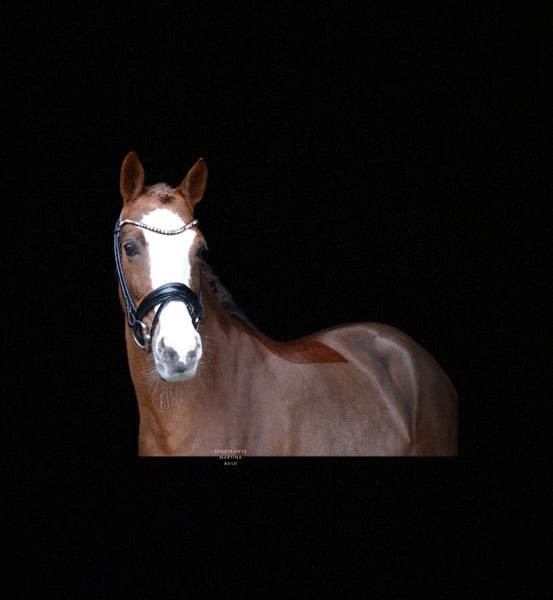 | Advertisement | | DR | Mare | Chestnut | Born 2014 | 14.4 hh | Sired by Golden State out of Dressman "Goldstück" is a stunningly beautiful mare, impressing not only with her appearance but also with three good basic gaits. She has already demonstrated her talent in competition. Her recent dressage tests, ridden by her 11-year-old rider, earned scores of 8 and 8.1 in both A- and L-level dressage. "Goldstück" has been used sparingly in competition, as she was purchased as a school pony for her still very young rider, who was to learn riding on her own pony at their home stable. "Goldstück" proved to be the perfect teacher, enabling her rider to successfully enter higher FEI-level competition at just 12 years old. The mare has an excellent size for smaller riders but also comfortably suits smaller adult riders. In addition to her sporting career, she is also very interesting from a breeding perspective and has already produced a very beautiful foal. "Goldstück" is now looking for a new small rider to help them start their riding journey once again. The mare is unshod in the video. A recent radiological exam, including back images from 2025, is available. https://youtu.be/_v2IDxajaHE?si=5-A6cokHZqam1wI5 For serious inquiries, please contact us by phone at +49 170 7941333.